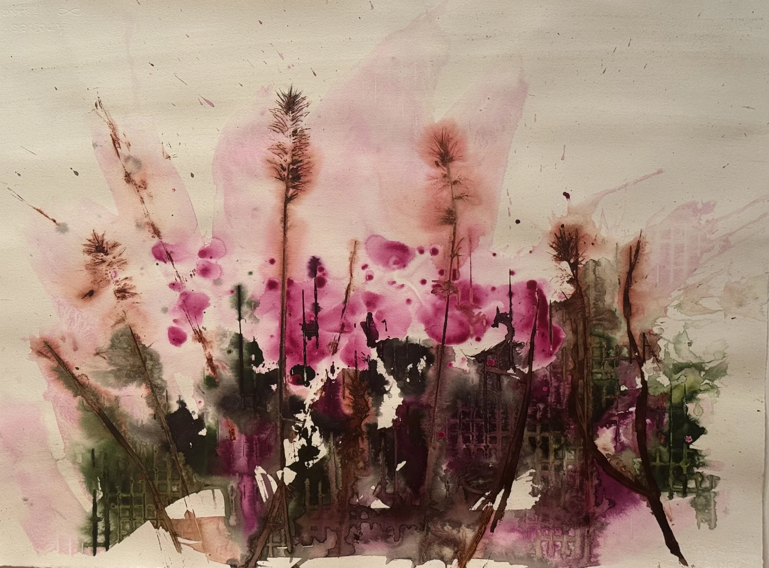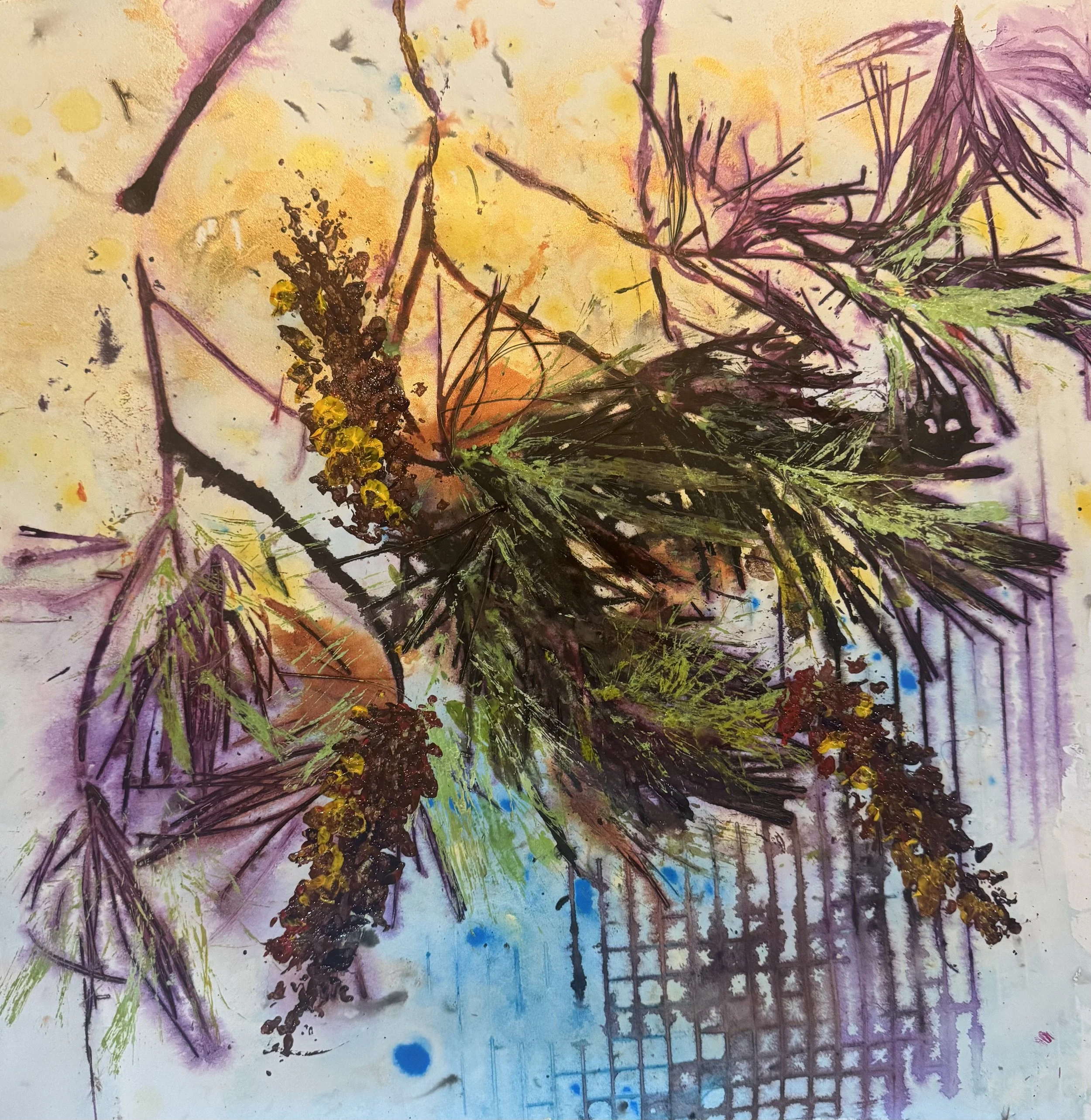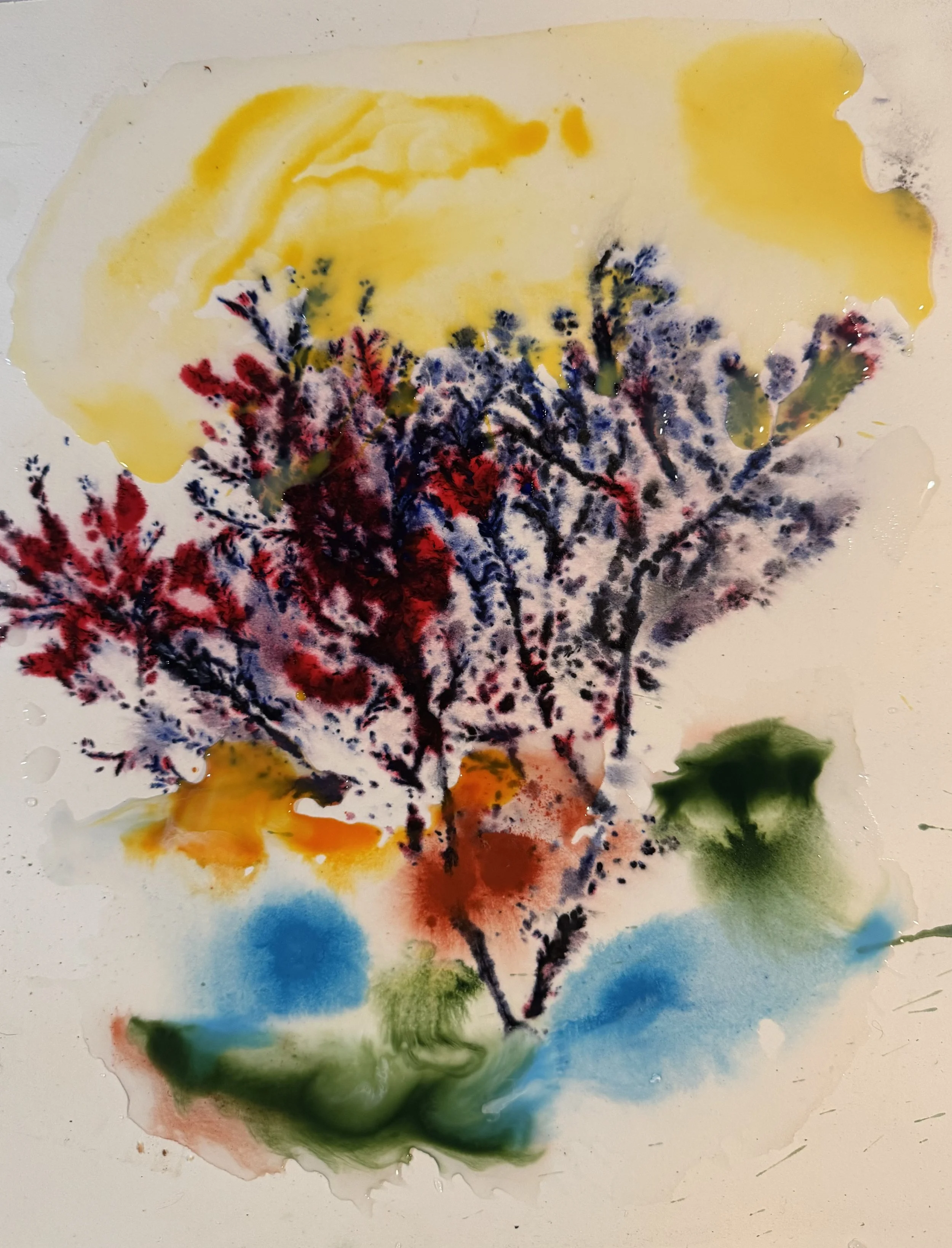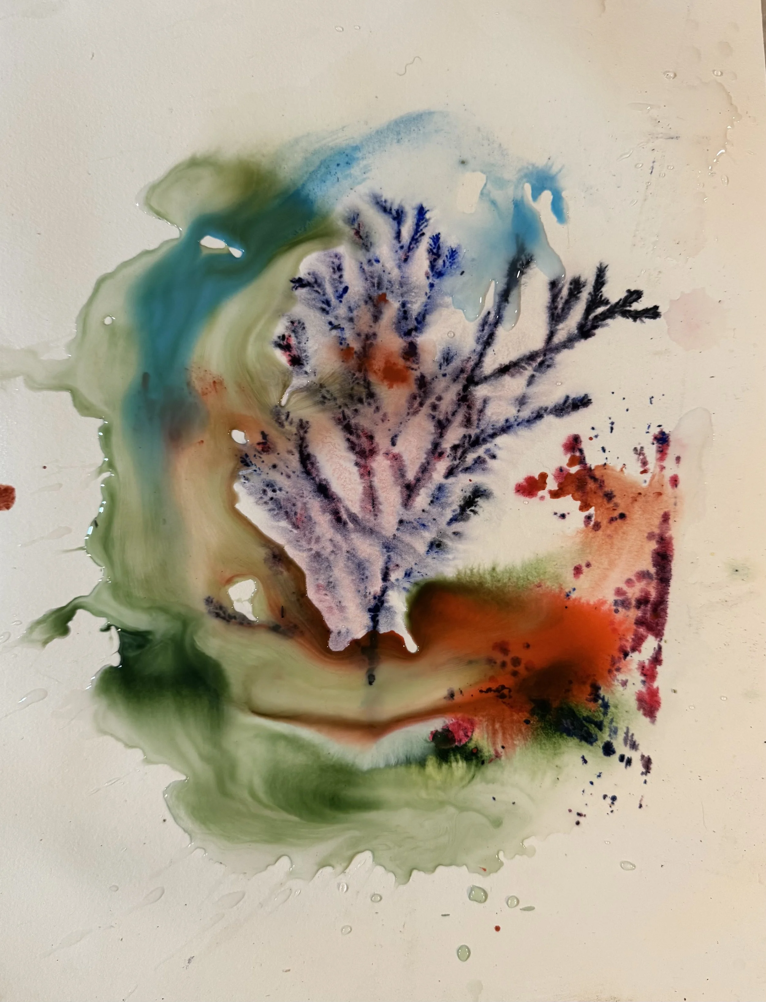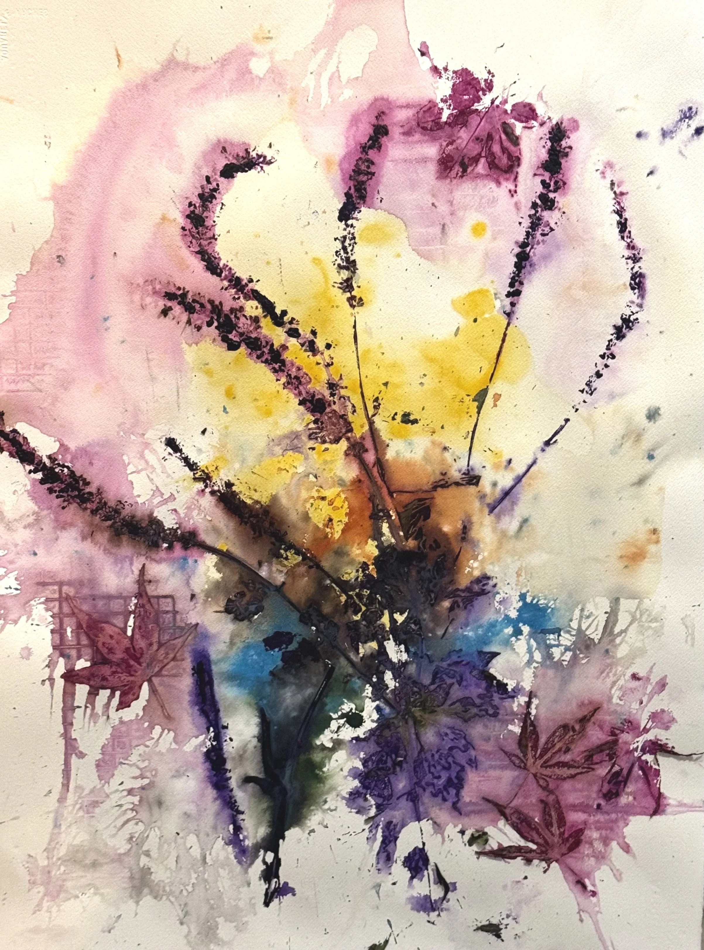 Creating Abstract botanicals and landscapes using water, natural materials and controlled chance.