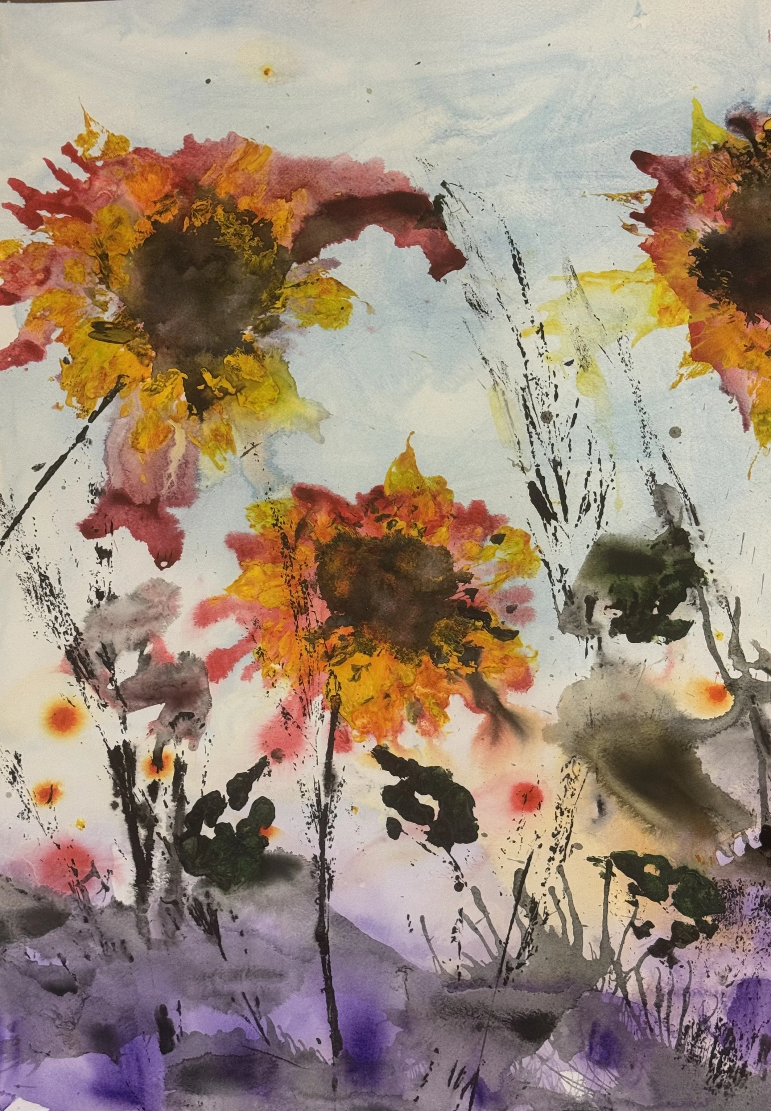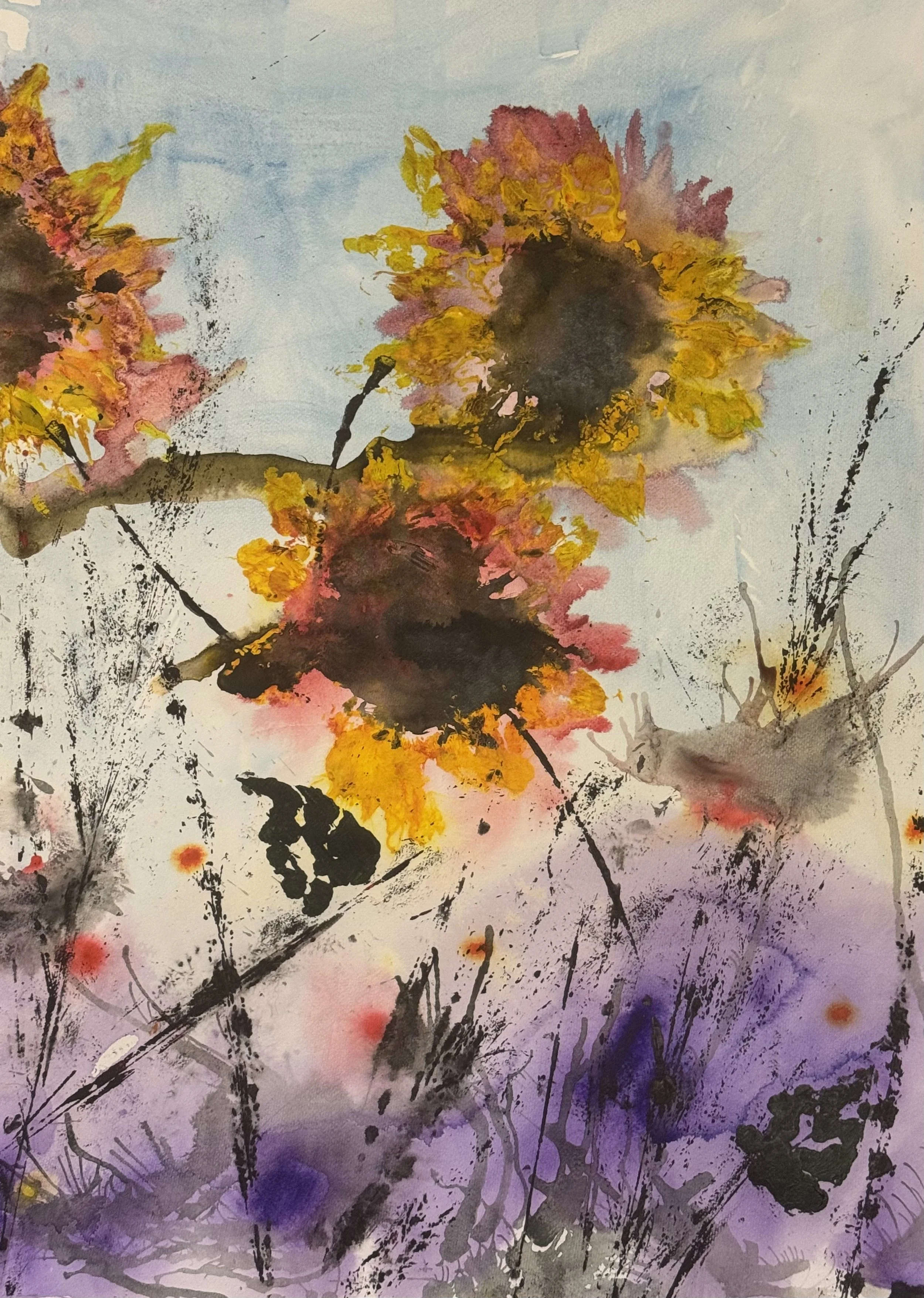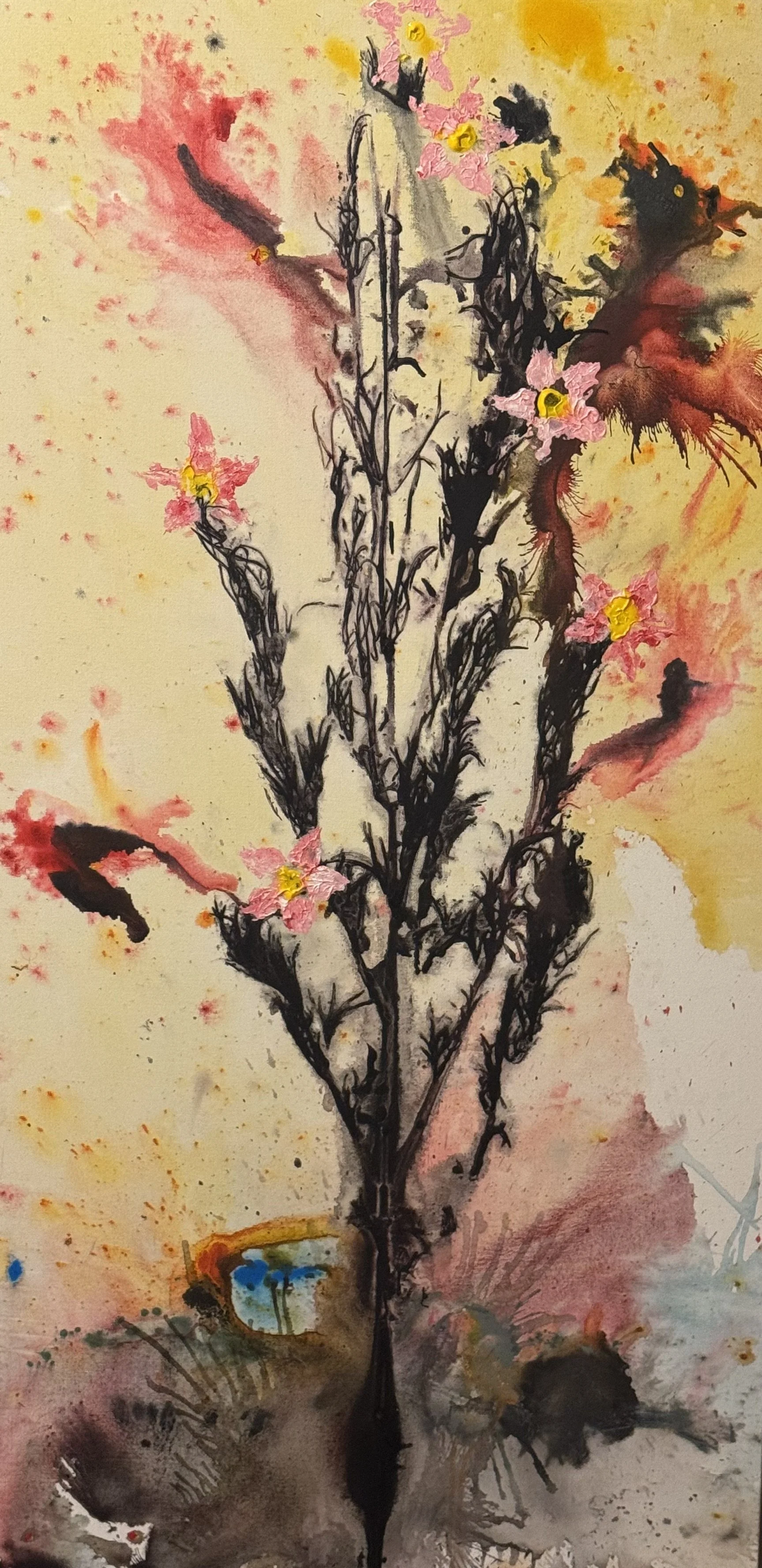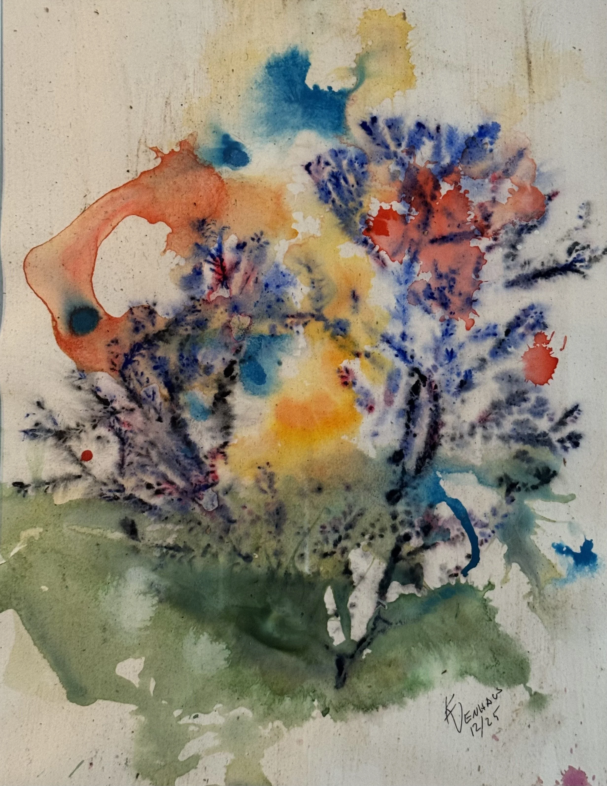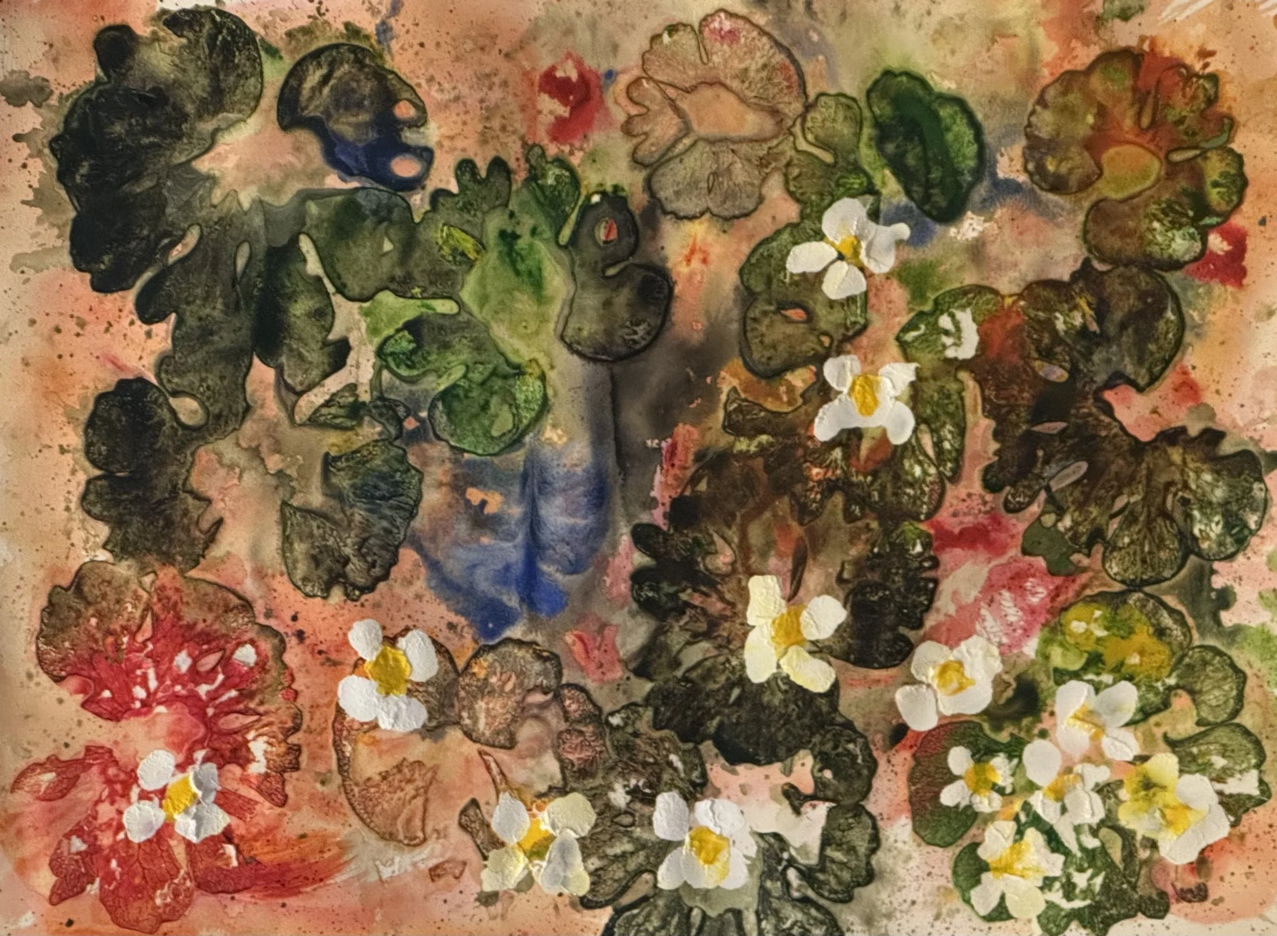 Creating Abstract botanicals and landscapes using water, natural materials and controlled chance.